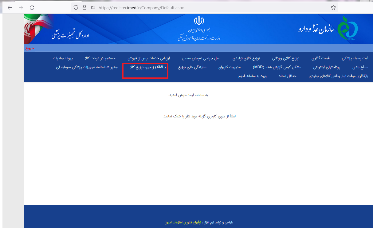 موارد خواسته شده در مرحله قبل را اول باید آماده کنید و طبق دستورالعمل اداره کل تجهیزات پزشکی فایل xml خود را مطابق نمونه زیر که برای شرکت وارداتی است آماده کنید: